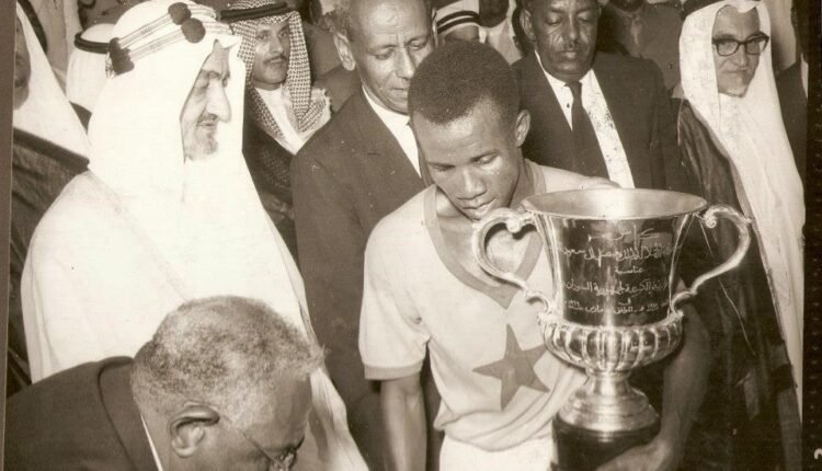الملك الشهيد فيصل بن عبدالعزيز فقيد العروبة والإسلام يسلم كأس الملك فيصل لكابتن المريخ جقدول في المباراة التي اقيمت على شرف الملك بالخرطوم عام ١٩٦٦ والتي انتصر فيها فريق المريخ على الهلال بهدف دون مقابل، ويبدو في الصورة الرئيس اسماعيل الأزهري والسيد خضر حمد والدكتور عبدالحليم محمد اعضاء مجلس السيادة.