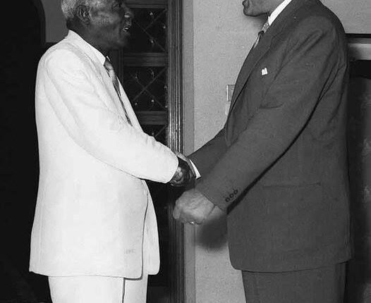 الاستاذ والشاعر أحمد محمد صالح عضو مجلس السيادة ما بعد الاستقلال وشاعر نشيد العلم وصاحب ديوان مع الاحرار في لقطة مشهودة مع الزعيم العربي الراحل جمال عبدالناصر، وقد فوجئ شاعرنا أحمد محمد صالح أن الرئيس عبدالناصر طلب منه قصيدته “فينوس” وكان ناصر يحفظ منها أبيات: