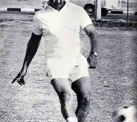 الصورة للرئيس جعفر نميري في أحدى التمارين وهو بكامل عافيته يلامس الكرة في رفق ومهارة (وكل أول ليه أخر).