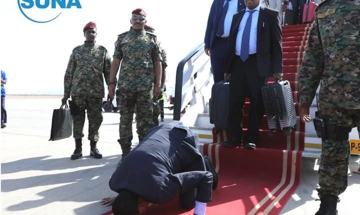 كامل إدريس يسجد شاكرا لله في مطار بورتسودان
