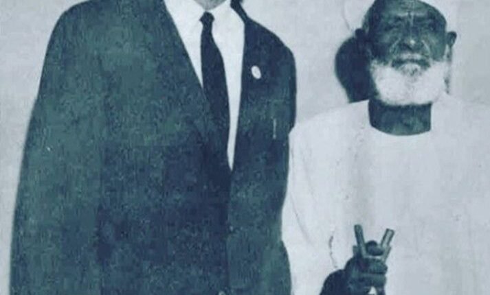 هذه الصورة النادرة يبدو فيها الشيخ أحمد حسون أفندي الخطيب والعالم والداعية الذي إنتقل من وظيفته بالبوستة بالسودان إلى أكبر داعية للاسلام بأمريكا وعلى يديه أسلم المئات وكان الأستاذ الأول والمعلم للماضل والداعية الشهيد مالكوم أكس والذي رافقه للحج عام 64 وصحح مفاهيمه عن الإسلام وشهد زعامته وبزوغ نجمه وسط الأمريكان السود إلى أن أغتالته مؤامرة يهودية إستغلت مجموعة من المناوئين له في جماعة إليجا محمد وقد ذكر الكاتب إيلكس هيلي كاتب رواية ROOTS والتي أصبحت مسلسل يحكي قصة الرق في أمريكا وقد كتب إيضًا مذكرات مالكوم أكس وفي ختامها قال فجعتنا حادثة إغتيال المناضل الشهيد مالكوم والذي سقط مضرجًا في دمائه وهو يؤدي ندوة في المركز الإفريقي الأمريكي ولم ندري ماذا نفعل حتى دخل شيخ سوداني قصير ومهيب تشع من عينيه بريق من الضياء والصلاح فقام بتكفين مالكوم أكس وصلى عليه ومازال المسلمون في أمريكا يذكرون دعوة الرجل وارشاده وتصحيحه لمسار الإسلام بأمريكا والشيخ حسون من مؤسسي الحركة السلفية بالسودان وقد عاد لبلاده ورحل عام 1971 راضيًا مرضياً بعد أن أسس جماعة شكلت تياراً مباركًا من الدعوة والفقه وتصحيح العقائد لعامة المسلمين وخاصتهم.