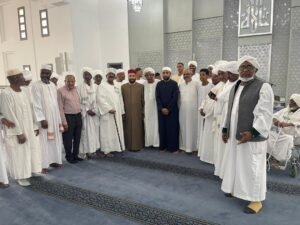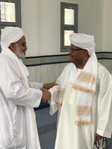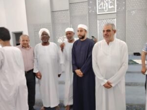 وتسابق المصلون السودانيون لتحية إمام وخطيب المسجد الشيخ محمد علي الحايس، وتنهئته بالعيد السعيد، معربين عن تقديرهم العميق لشخصه الكريم الذي طالما توالت دعواته الصادقة للسودان وأهله بعودة السلم والأمان لديارهم سائلين المولى عز وجل ان يتقبل دعواته الصالحات.