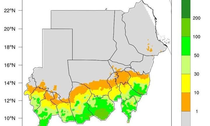 أواسط القضارف، شمال غرب سنار، جنوب النيل الأبيض، أقصى جنوب شمال كردفان، وسط غرب كردفان، وسط شرق دارفور، وسط جنوب دارفور، وسط وسط دارفور، وأقصى جنوب غرب دارفور.