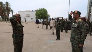 وكان في استقباله رئيس هيئة الأركان الفريق أول ركن محمد عثمان الحسين وعدد من القادة، حيث استمع سيادته إلى إيجاز حول الأوضاع الأمنية بالبلاد والجهود الجارية في إطار حرب الكرامة الوطنية.