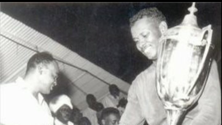 هذه اللقطة تعود إلى عام 1970، ويظهر فيها الرائد أبو القاسم محمد إبراهيم، عضو مجلس قيادة ثورة مايو، وهو يسلّم الكابتن عبد العزيز عبد الله، حارس مرمى المريخ الشهير والفريق القومي، كأس أفريقيا الذي فاز به السودان. وقد اقتنص الهدف الذهبي حينها لاعب بري الشهير والفريق القومي حسبو الصغير.