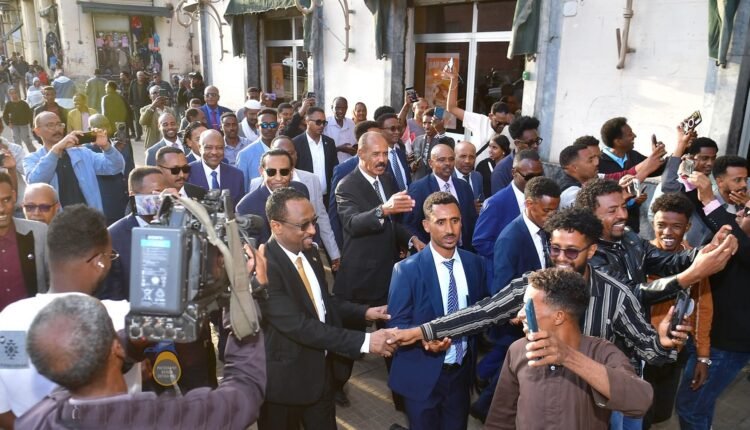 تحية جماهيرية لوفد رئيس الوزراء خلال جولته بشوارع اسمرا برفقة الرئيس افورقي