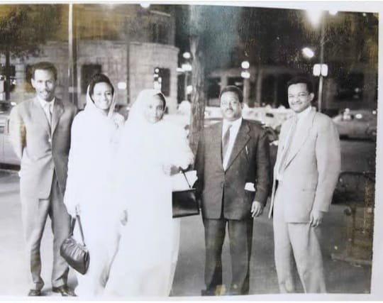 اللقطة النادرة: من اليمين للسيد الفاضل الجاك والراحل مهدي حسين شريف وزوجته الراحلة آمنة حسن شريف، ثم السيدة وصال الصديق المهدي وزوجها الراحل الدكتور حسن الترابي الذي كان طالباً للدراسات العليا بباريس، فرنسا. ذهب الجميع إلى الرفيق الأعلى سائلين لهم المغفرة والقبول وبقيت السيدة وصال المهدي الشاهدة الوحيدة على العصر.