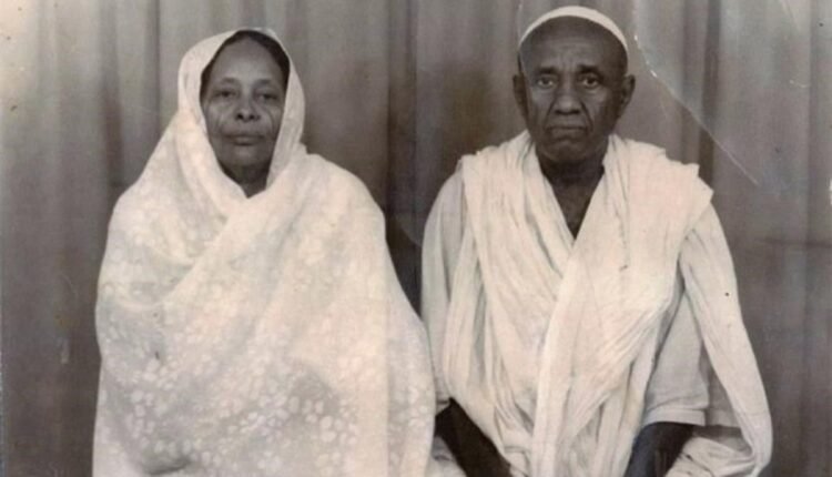 وهذه اللقطة النادرة يبدو فيها الرجل مع الراحلة آمنة عبد الله قِويّ (آمنة بت لطفي)،