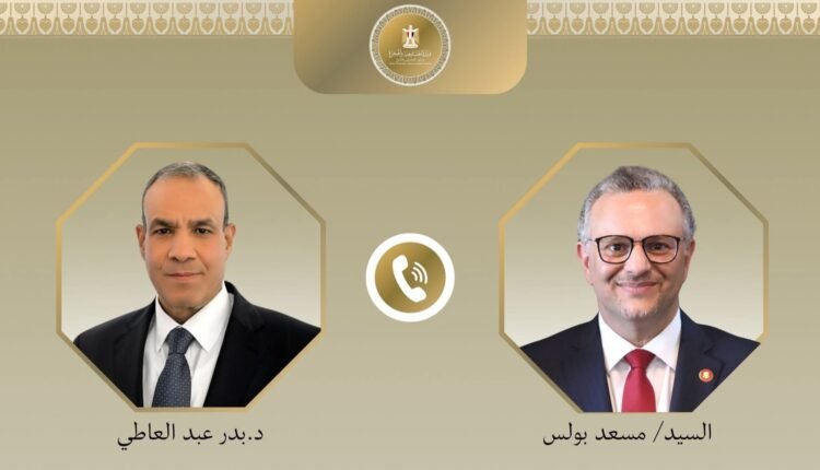 جرى اتصال هاتفى بين د. بدر عبد العاطي وزير الخارجية والهجرة وشئون المصريين بالخارج مع السيد مسعد بولس كبير مستشاري الرئيس الأمريكي للشئون العربية والأفريقية يوم السبت ١٥ نوفمبر.