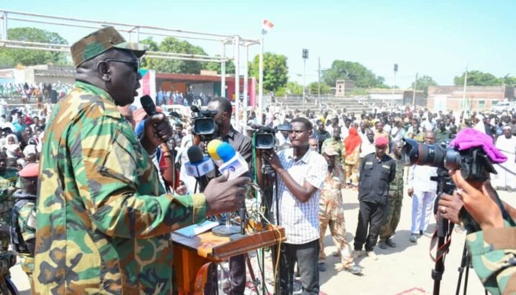 شهد الفريق أحمـد العمدة بـادي حاكـم إقليم النيل الأزرق عضو مجلس الأمن والدفاع الوطني رئيس لجنة الأمن المشرف على اللجنة العليا للإستنفار والمقاومة الشعبية بالإقليم اليوم بميدان عمارة دنقس بمدينة الرصيرص مراسم تسليم الفوج الأول من مستنفري محافظة الرصيرص توطئةً لإنخراطهم في عمليات التدريب المتقدم برعاية الفرقة الرابعة مشاة إستجابةً لنداء التعبئة العامة بالبلاد .