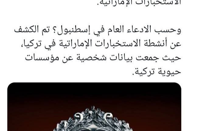 أعلنت النيابة العامة في إسطنبول، في بيان صدر اليوم 25 نوفمبر 2025، تفكيك خلية تجسّس تعمل لصالح جهاز المخابرات في دولة الإمارات، وذلك بالتنسيق بين جهاز المخابرات التركي (MIT) ومديرية مكافحة الإرهاب في شرطة إسطنبول.