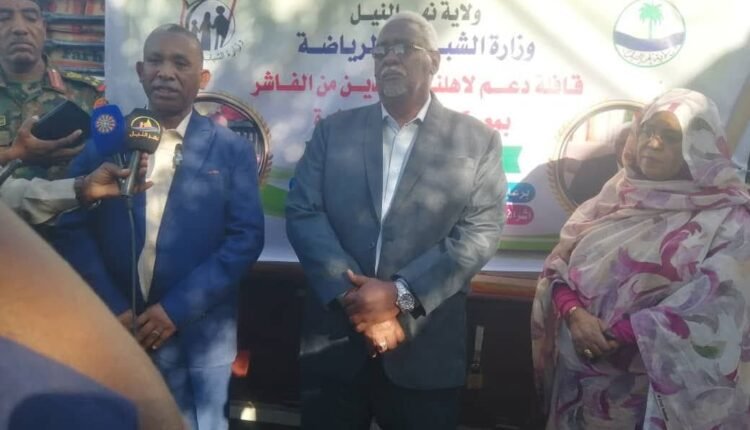 سيرت وزارة الشباب والرياضة بولاية نهر النيل اليوم قافلة الدعم والمؤازرة تحت شعار “كلنا الفاشر” لنازحي الفاشر بمعسكر النهضة بعطبرة .