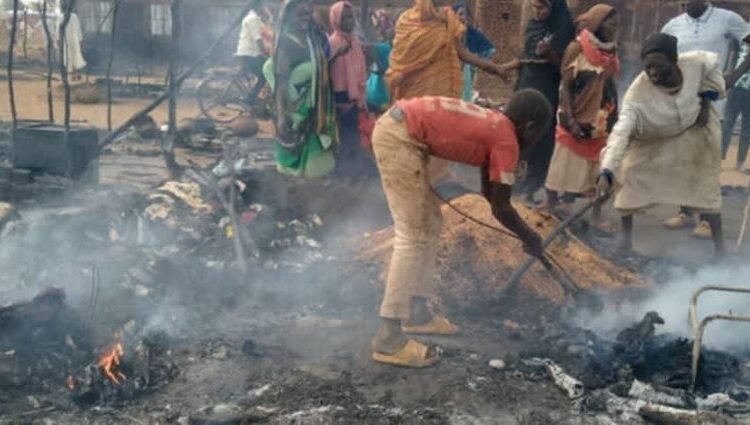 ورصدت “دارفور24″، افتراش العشرات من الأسر للعراء جراء هذا الحريق.