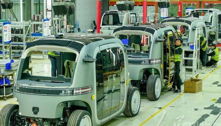 شوهد في مجمع صناعة المعلومات الإلكترونية في منطقة التكنولوجيا الفائقة بمدينة قوييانغ، مقاطعة قويتشو يوم 16 ديسمبر الجاري العمال وهم يعملون في ورشة إنتاج الحافلات الصغيرة ذاتية القيادة التابعة لشركة قويتشو هانكايز للتكنولوجيا الذكية المحدودة.