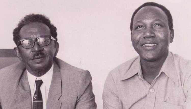 طلب رئيس قسم الأرشيف بـ(ألوان) من الشاعر الكبير الراحل مصطفى سند، الذي زار يومها «ألوان»، أن يعلق على هذه الصورة التي تجمع الشاعرين الراحلين محمد المهدي المجذوب والنور عثمان أبكر، فكتب بخطه الرائع على الورقة التعليق القصير الذكي التالي: