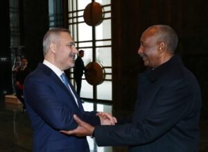 وأجرى الرئيس التركي رجب طيب أردوغان مراسم استقبال رسمية بالقصر الرئاسي في أنقرا على شرف زيارة رئيس مجلس السيادة الانتقالي لتركيا.