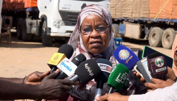 دشنت الأستاذة سلوى آدم بنية مفوض مفوضية العون الإنساني قوافل الإغاثة الانسانية المتجهة لاغاثة المتأثرين بالحرب في الولايات الآمنة.