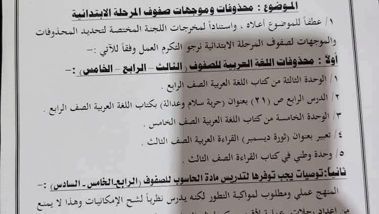 وتضمَّن التعميم توجيهات تتعلق بتدريس مادة الحاسوب للصفوف الرابع والخامس والسادس، موضحًا أن طبيعة المنهج العملية لا تتناسب مع الإمكانيات المتوفرة حاليًا في المدارس، الأمر الذي يستدعي تدريسه بصورة نظرية مؤقتًا، مع إمكانية تنظيم زيارات تعليمية لمراكز الحاسوب عند توفر الظروف المناسبة.