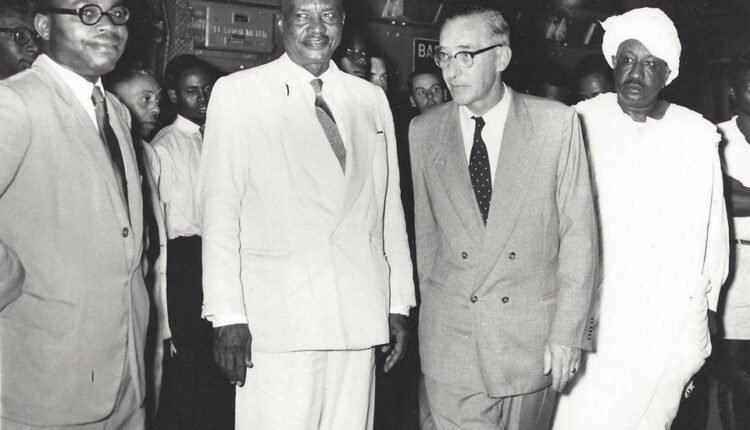 صورة تجمع عبدالله بك خليل رئيس الوزراء الأسبق وشيخ العرب محمد أحمد أبو سن وزير الشؤون الإجتماعية في زيارة لأحد المرافق العامة في نيجريا في العام 1957 ، ويظهر على يمين السيد عبدالله خليل بروفيسور تسليم إلياس أول من تقلد وزارة العدل النيجيرية وكان قاضياً في محكمة الإستئناف في لندن وأصبح لاحقاً رئيس القضاء النيجيري من العام 1972 حتى تعيينه كأول رئيس من أصول إفريقية لمحكمة العدل الدولية من العام 1976 حتى 1985.