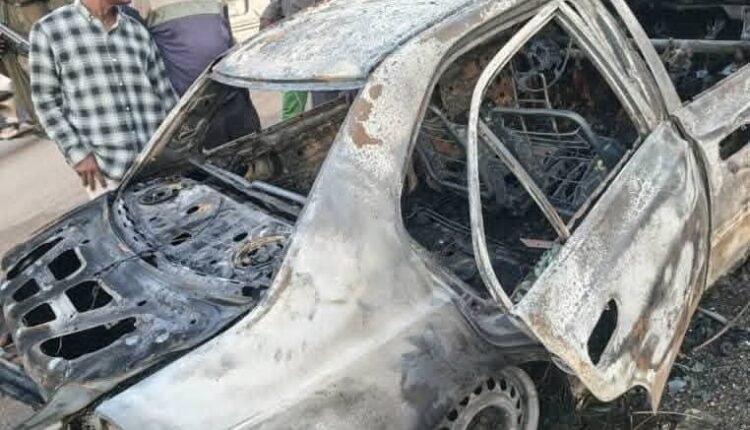 كما أسفر الانفجار عن احتراق العربة بالكامل.