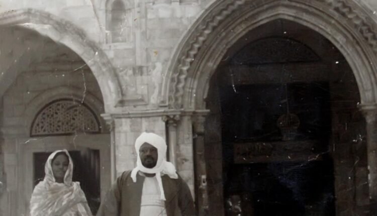 هذه اللقطة النادرة هي لزيارة السيد إسحق الخليفة شريف برفقة زوجته السيدة خديجة شريف إسماعيل الخليفة شريف لفلسطين وقد زار بيت المقدس في العام 1967 قبل النكسة وصلى بالمسجد الأقصى.