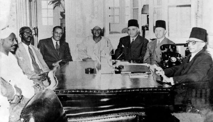 هذه اللقطة يبدو فيها وفد الإستقلايين التي زار مصر عام 48 للتباحث حول حق تقرير المصير ،وكان الوفد بقيادة عبد الله الفاضل المهدي مؤسس دائرة المهدي وعراب التوجه الإقتصادي لطائفة الأنصار وحزب الأمة وسط الصورة وعلى يساره على التوالي إبراهيم أحمد وهو أول وزير مالية بعد الإستقلال والأستاذ عبد الرحمن علي طه أول وزير معارف وبابو نمر زعيم قبلة المسيرية وقد ارتبط بآل المهدي بالمصاهرة فقد تزوج إحدي كريمات السيد عبدالرحمن المهدي ويبدو في الصورة كذلك رئيس الوزراء المصري حينها الهلالي باشا الذي افترع من الوفد الإستقلالي المفاوضات.