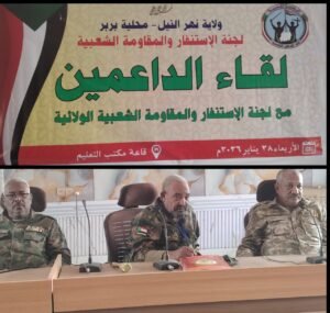 في إطار طوافه بمحليات ولاية نهر النيل، التقى رئيس المقاومة الشعبية بالولاية، سعادة اللواء ركن الصادق خالد البشير، صباح الأربعاء، باللجنة الأمنية بمحلية بربر، إلى جانب المكتب التنفيذي للمقاومة الشعبية وقياداتها، وقيادات المجتمع وداعمي المقاومة، فضلاً عن مستنفري معسكرات الكرامة بمنطقة العبيدية – الفاروق.