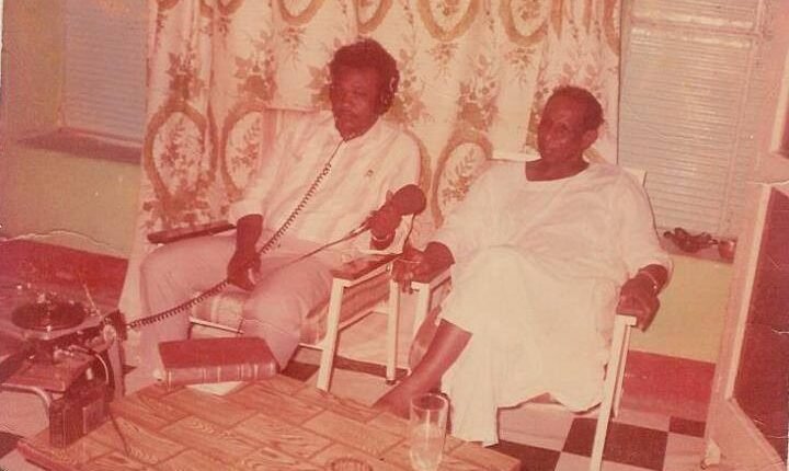 اللقطة في منزل البروفيسور عبدالله حيث كان البروفسير صلاح الدين الفاضل يسجل بنفسه تواضعاً حلقه من البرنامج الإذاعي محاضرة الاسبوع.