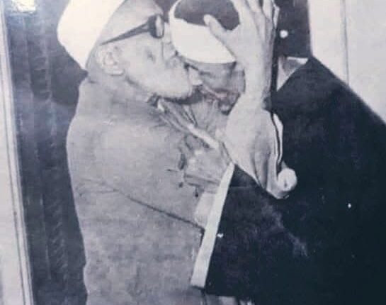 وهذه اللقطة تبين محبة العلماء واحترامهم لبعضهم البعض، دون غيرة أو حسد مما نشاهده الآن حباً للظهور وسعياً وراء الدنيا الفانية. وفي الصورة يبدو الشيخ جاد الحق يقبل رأس الشيخ الشعراوي، وكذلك فعلها الشعراوي في حق شيخه.