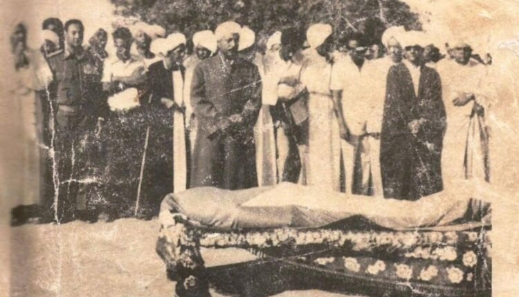الصورة للرجل في مثواه الأخير ويظهر فيها الرئيس جعفر نميري والسيد محمد عثمان الميرغني والسيد أحمد الميرغني وعدد من قيادات الحركة السياسية والثقافية والاجتماعية آنذاك.