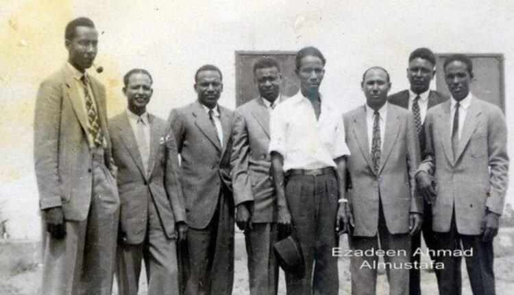 هذه اللقطة النادرة يظهر فيها من اليمين أحمد المصطفى، برعي محمد دفع الله، إبراهيم الكاشف، م/ إسماعيل فضل المولى، حسن الخواض، عثمان الشفيع، حسن عطية، وبروف الماحي إسماعيل.