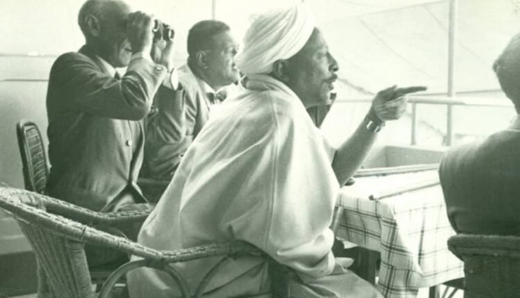 لقطة نادرة للناظر الراحل بابو نمر الزعيم السودانى الكبير وهو يتابع باهتمام أحد سباقات الخيل في نادي الفروسية بمدينة الإسكندرية بمصر، يونيو 1952، ويجلس بجواره بعض أعضاء وفد السودان ويظهر السيد محمد صالح الشنقيطي.